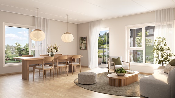 - Åpen stue/kjøkken løsning med store vinduer som gir godt med sollys