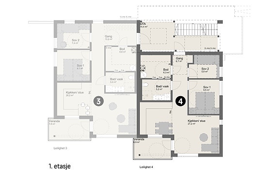 Nye flotte og praktiske 3-roms leiligheter som krever minimalt med vedlikehold