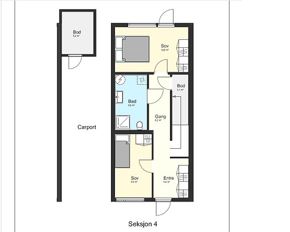 Det bygges carport rett ved siden av boligen med sportsbod på 5 kvm. Det legges opp til enkel tilkobling av el billader om du trenger det.