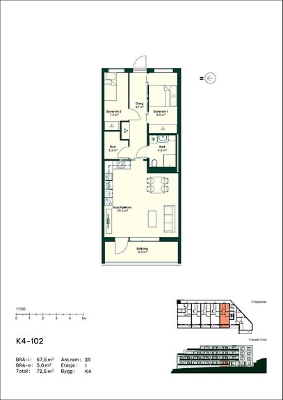 Totalt bruksareal: 71,2m²