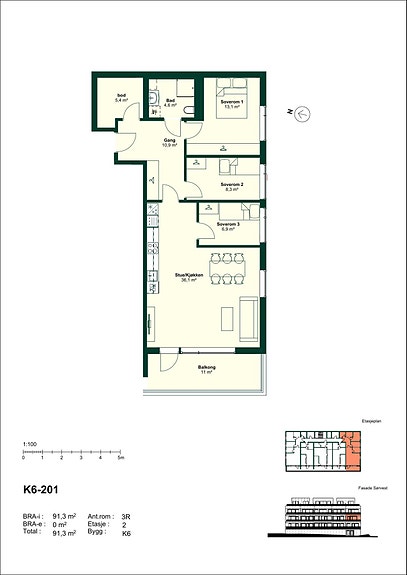 Totalt bruksareal: 91,3m²