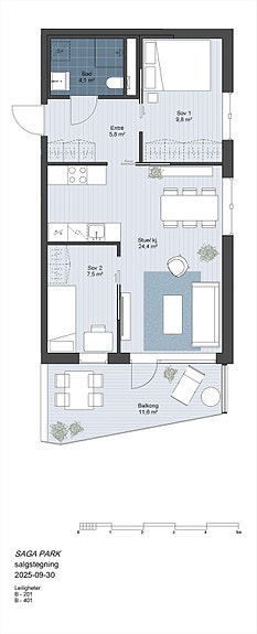 Innbydende 3-roms hjørneleilighet med åpen stue/kjøkken og gode møbleringsmuligheter. Den sørvendte og romslige balkongen gir fine solforhold og en hyggelig uteplass. Passer perfekt for både singel og par.