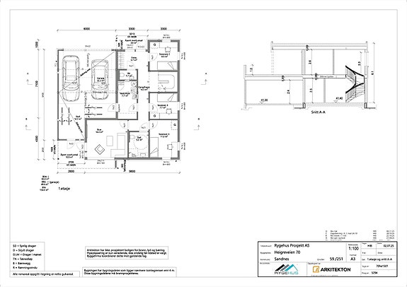 1. etasje (BRA 132 m² inkl. garasje): Entré, gang med trapp, 3 soverom, bad, TV-stue, vaskerom og stor dobbelgarasje (med mulighet for bod).
