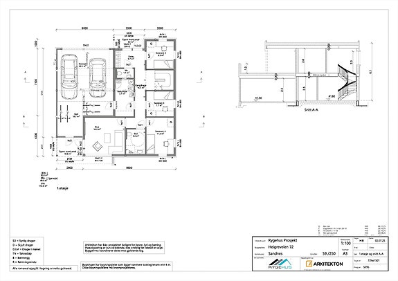 1. etasje (BRA 132 m² inkl. garasje): Entré, gang med trapp, 3 soverom, bad, TV-stue, vaskerom og stor dobbelgarasje (med mulighet for bod).