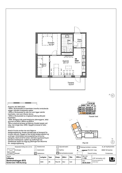 - TBA (terrasse-/balkongareal) 12,80 kvm