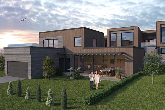 Denne eneboligen i kjede er gjennomtenkt utformet med moderne arkitektur, gode planløsninger og materialvalg som gir boligen et helhetlig og tidløst uttrykk. Store vindusflater gir boligen rikelig med dagslys og åpner rommene mot uteområdene, samtidig som planløsningen legger til rette for en praktisk og behagelig hverdag.