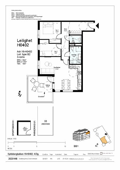 Salgsstart med forkjøp for Obos medlemmer er 2.februar Denne blokken ligger lengst vest mot den eksisterende småhusbebyggelsen Blokken har 19 leiligheter fra de minste på 47m2 til de største på 124.