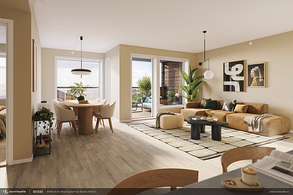 Salgsstart med forkjøp for Obos medlemmer er 2.februar Denne blokken ligger lengst vest mot den eksisterende småhusbebyggelsen Blokken har 19 leiligheter fra de minste på 47m2 til de største på 124.