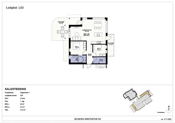 - Hjørnebeliggenhet som sikrer mye lys i hele leiligheten, og uteareal som gir både gode solforhold og flott utsikt