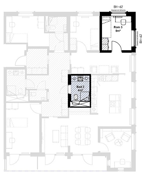 Møbleringen viser ulike løsninger og bruksområder - fra rom med plass til ro og avslapning, til rom tilpasset arbeid, sosialt samvær eller måltider med venner. Hvert rom har fått sitt eget særpreg, både i stil og møblering, og gir et tydelig bilde av fleksibiliteten i boligen og muligheten til å skape et hjem som passer din livsstil.
