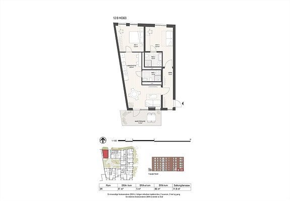Smart leilighet med mulighet for hybelløsning og ekstra kjøkken. 2 fullverdige bad og praktisk entrè med god plass til garderobeløsning. Sørvent terrasse i gårdsrom.