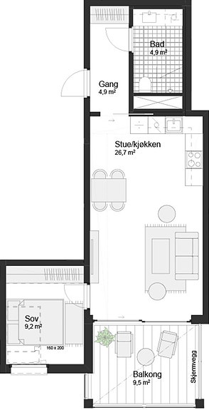 Leilighet med tre soverom med generøs takhøyde, store vindusflater, lys en-stavs eikeparkett og to vestvendte balkonger. Ny teknisk standard og balansert ventilasjon sørger for godt inneklima og lave kostnader til oppvarming.