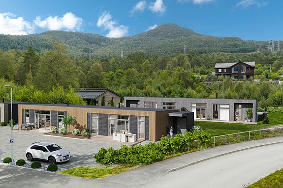 Moderne enebolig i rekke med carport og alt på ett plan ! Berge Hus presenterer en stilfull, arealeffektiv enebolig i funkisstil, designet for den moderne familien som ønsker både funksjonalitet og estetikk. Boligen er perfekt tilpasset en lettvint hverdag!