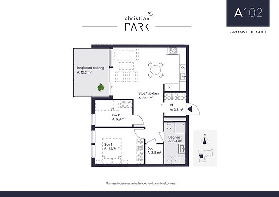 Fin 3-roms leilighet med god plass til garderobeløsninger og innvendig bod. Entré med praktisk skyvedør, to soverom og romslig bad. Det ene soverommet kan enkelt inntas i stuearealet dersom man skulle ønske en stor to-roms leilighet. Kjøkkenet er noe tilbaketrukket, som gir fint rom i resten av stuearealet. Fra stue er det skyvedør til god, solrik balkong mot vest som vil kunne fungere som ekstra stue gjennom deler av våren, sommeren og høsten. Leiligheten ligger i en høy 2. etasje fra gårdsplassen.