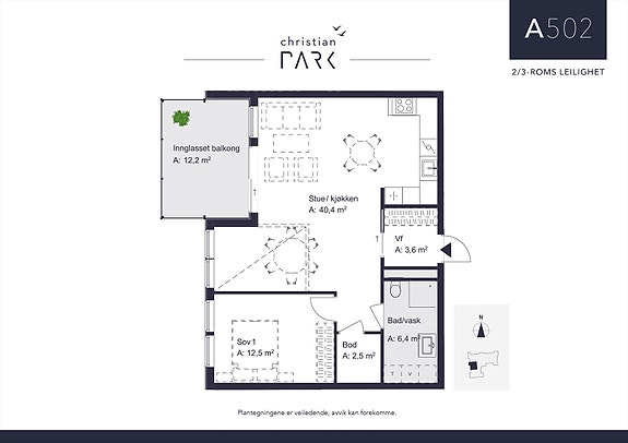 Stor og bekvem 2-roms leilighet med god plass til garderobeløsninger og innvendig bod. Entré med praktisk skyvedør, ett soverom og godt bad. Stuearealet er meget romslig og ligger til rette for at man kan etablere et ekstra soverom dersom man ønsker. Kjøkkenet er noe tilbaketrukket som gir fint rom i resten av stuearealet. Fra stue er det skyvedør til god balkong mot vest med flott utsikt mot sentrum og omkringliggende områder. Her kan man nyte sola til sene kveldstimer. Den innglassede balkongen vil kunne fungere som ekstra stue gjennom deler av våren, sommeren og høsten.