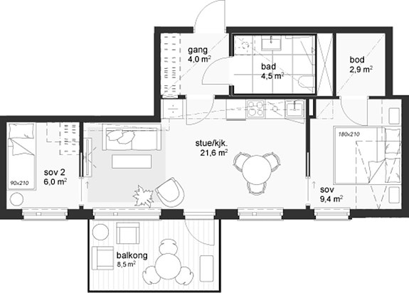 Leiligheten bygges med lys en-stavs eikeparkett, generøs takhøyde og store vindusflater. Balansert ventilasjon sørger for godt inneklima og lave kostnader til oppvarming. Som kjøper kan du velge mellom tre ulike interiørstiler uten ekstra kostnad. Konseptene FUNKIS, JÄRVENPÄÄ og LØKKA definerer veggfarger, kjøkkenfronter og -håndtak, benkeplate og fliser på bad. Du kan lese mer om innredningsvalgene i prospektet. Leiligheten kvalifiserer til Grønt Boliglån. Ta kontakt med selger for mer informasjon.