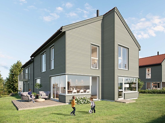 - Plass til «så mye kjøkkeninnredning du måtte ønske», en raus spisestue og en salong med plass til hele storfamilien