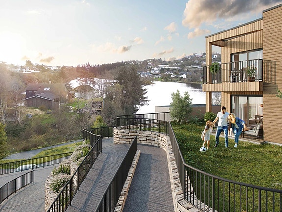 Nærhet til naturen: Boligene ligger i et rolig og naturskjønt område med badeplass, grøntarealer og turmuligheter rett utenfor døren.