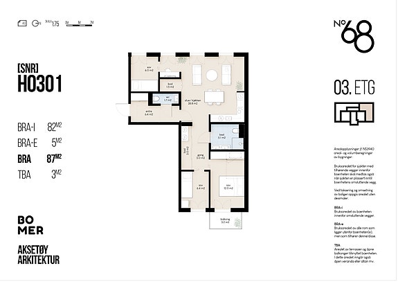 No68 kombinerer klassisk bygårdskarakter med moderne løsninger og god arealutnyttelse. Leilighetene får funksjonelle planløsninger, tidsriktige materialvalg og rikelig naturlig lys fra store vindusflater. Det er lagt vekt på kvalitet og komfort i både planlegging og utførelse, slik at boligene skal være lettstelte, praktiske og tilpasningsdyktige for ulike livssituasjoner.