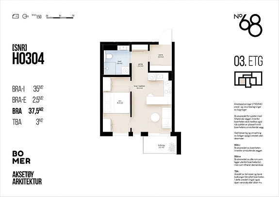 No68 kombinerer klassisk bygårdskarakter med moderne løsninger og god arealutnyttelse. Leilighetene får funksjonelle planløsninger, tidsriktige materialvalg og rikelig naturlig lys fra store vindusflater. Det er lagt vekt på kvalitet og komfort i både planlegging og utførelse, slik at boligene skal være lettstelte, praktiske og tilpasningsdyktige for ulike livssituasjoner.