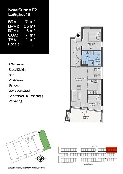 - Parkering i garasjeanlegg (leilighet 1-5 og 8-11 har ikke parkeringsplass)