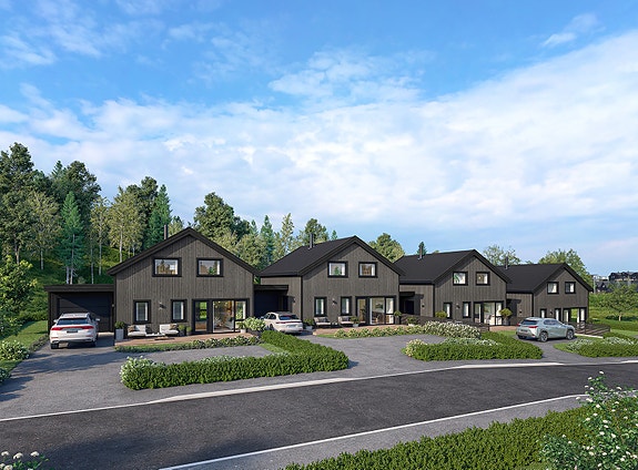 Fire prisgunstige eneboliger i rekke på Strandfjorden