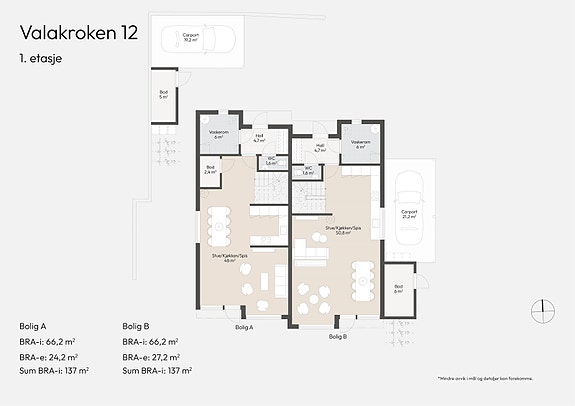 Det tas forbehold om avvik på arealer. Oppgitt areal er avrundet og basert på foreløpige tegninger fra arkitekt. Endelig areal kan avvike noe ved endelig ferdigstillelse.