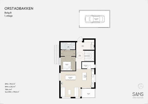 Plantegning Bolig B, 1.etasje.