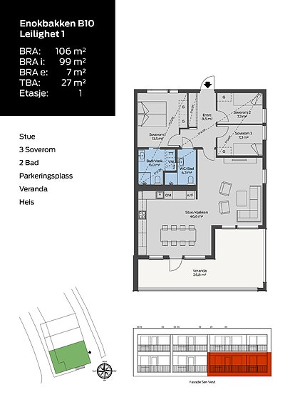 Nå starter klatringen opp bakken i Enokbakken. Og disse leilighetene er en god start. For denne blokka er fin å se på, boligene har god planløsning og herlig overbygget balkong mot sørvest og mange timer sol. Jo høyere du bor, jo bedre utsikt. Det gjelder også i Enokbakken.