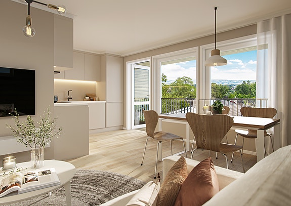 Lettstelte leiligheter på 40 til 50 m² med ett til to soverom, gode solforhold og kort vei til alt du trenger i hverdagen. Boligene på Larssveen passer perfekt for både single og par.