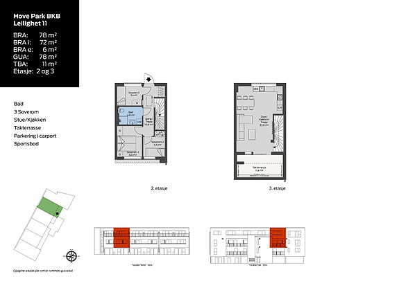 LEILIGHET 7-12: TO ETASJER OG TAKTERRASSE