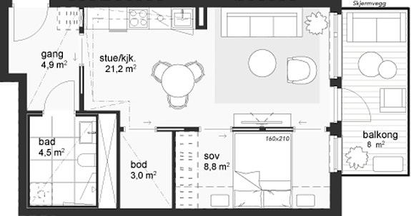 Leiligheten bygges med lys en-stavs eikeparkett, generøs takhøyde og store vindusflater. Balansert ventilasjon sørger for godt inneklima og lave kostnader til oppvarming. Som kjøper kan du velge mellom tre ulike interiørstiler uten ekstra kostnad. Konseptene FUNKIS, JÄRVENPÄÄ og LØKKA definerer veggfarger, kjøkkenfronter og -håndtak, benkeplate og fliser på bad. Du kan lese mer om innredningsvalgene i prospektet. Leiligheten kvalifiserer til Grønt Boliglån. Ta kontakt med selger for mer informasjon.