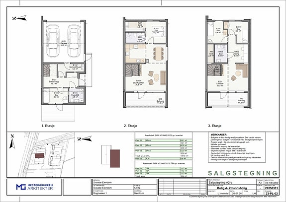 Prosjektet består av tre boliger av Boligtype A, en stilren og funksjonell bolig over tre plan med gjennomtenkt planløsning og kvalitetsmaterialer som gir et moderne og behagelig hjem. Med ca. 182 m² bruksareal får du god plass til hele familien, og løsninger som dekker både dagens og morgendagens behov - enten du ønsker åpne fellesarealer, privatliv eller fleksibilitet til hjemmekontor og hobbyaktiviteter.