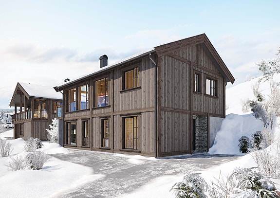 Romslig to etasjes energismart hytte på fantastiske Moseteråsen | Vestvendte tomter med god solgang.