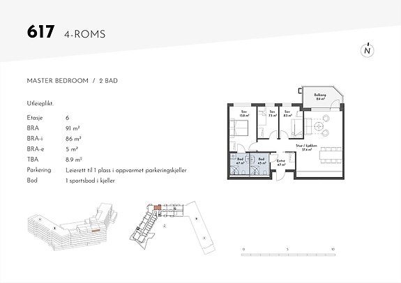 Det følger 1 stk. leierett til parkering i underetasjen med leiligheten.