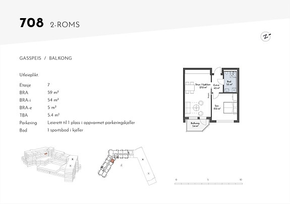 Utleieplikt. Stue med åpen kjøkkenløsning og utgang til balkong, romslig soverom og bad.