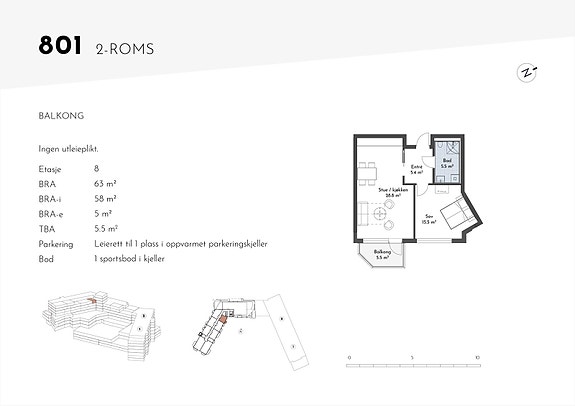 Uten utleieplikt. Stue med åpen kjøkkenløsning og utgang til balkong, romslig soverom og bad.