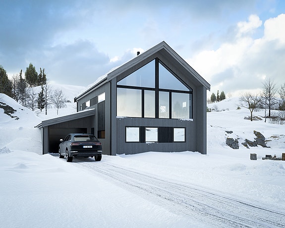 Hytten er prosjektert. Ønsker du å endre materialvalg, kjøkken med mer kan dette enda ordnes.
