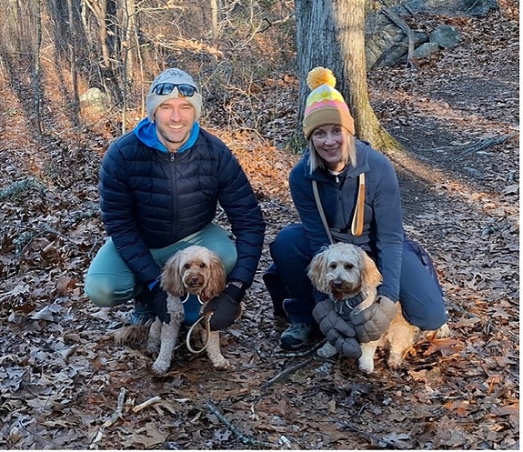 Oss og hundene våre på skogstur i CT, USA