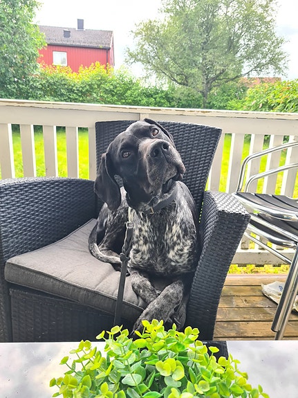 Jeg har en fuglehund, hannhund på 4 år. Så det må være lov med hund.