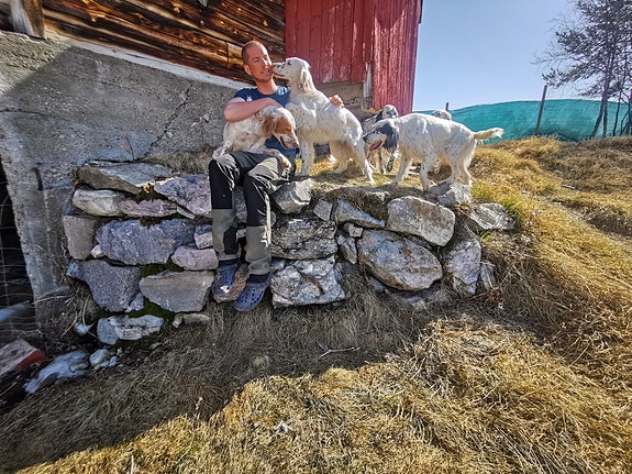 Har 4 engelsk settere. Disse er rolige, snille og veloppdratte hunder.