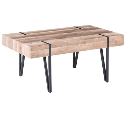 Dette kaffebordet har en industriell stil og utstråler en vintage sjarm som vil gi et tidløst preg i ditt hjem. Det har en bred solid treoverflate og er utstyrt med fire hjul for enkel mobilitet. Kaffebordet kan også brukes som et sofabord, stuebord, sidebord, osv.