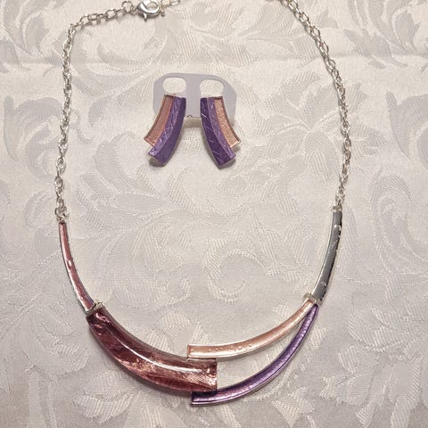 Smykke «Ship og Good Fortune» (design Bjørn Sigurd Østern) med sølv klave ble kjøpt hos David Andersen i ca. 1970. Fra David Andersens berømte TROLL serie". Stemplet NORWAY STERLING 925S INV B.S.Ø. Klaven er 14cm. "høy" og 12cm. "bred". Ørepynten i sølv og thulite sten kan kjøpes i tillegg for kr.300,-.