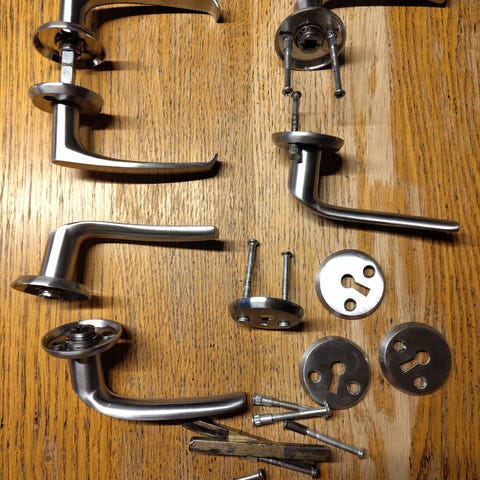 4 sett helt ny , solid messing dørhåndtak , kr 200 pr sett