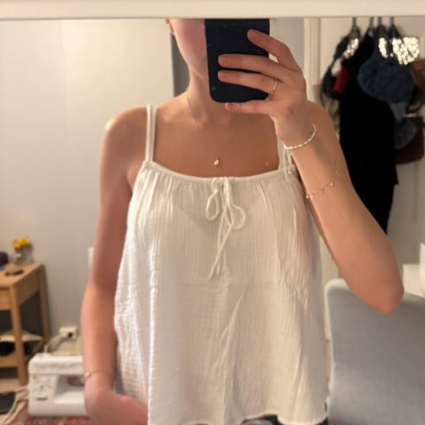 Superfin omslagstopp med lukking på ryggen. Toppen er helt ny med lapper, og er størrelse M. Materiale: 95% viskose, 5% lin. Jeg sender stort sett alltid første virkedag etter mottatt penger for frakt :)