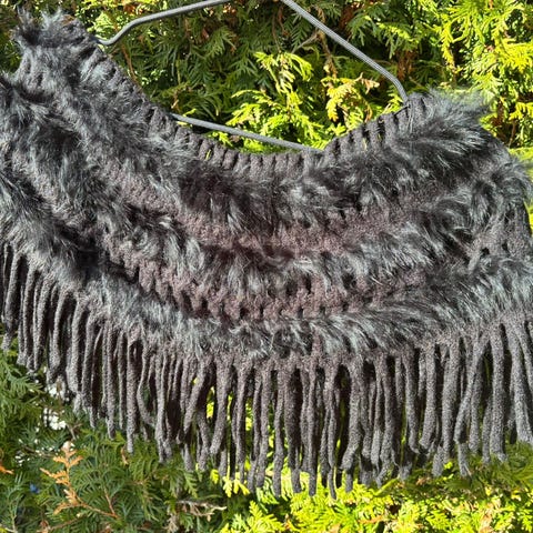 150*55 trekantet. ,lekkert brunt sjal. Merker: 100 prosent Real mink italiensk. Brukt veldig få ganger. Kjøpt for .ca 25 år siden. Kan knyttes. Kjøper betaler porto.