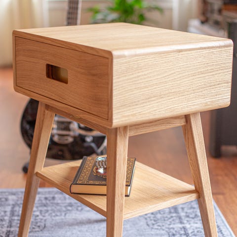Dette sidekabinettet vil være et praktisk og i tillegg et dekorativt tillegg til soverommet, oppholdsrommet eller stuen. Den rektangulære bordflaten er ideell for å stille ut pyntegjenstander, bilderammer eller også potteplanter, og det er rikelig med plass for å oppbevare alle slags mindre gjenstander organisert og innenfor rekkevidde.