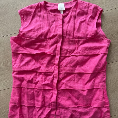 Ny dametopp/bluse i dosen fine farger i str. 38-M fra merket ANE MONE, Italian Fashion. Stoffet er i 100% polyester og er meget lett, luftig og behagelig å ha på, nesten som silke: Er ca 68 cm sid og ca 60 cm vid helt nederst. Nypris kr. 399,-, selges kr. 120.-. Det er billig for denne flotte toppen/blusen. PS: Den er mye flottere enn det som kommer fram på bildene!!! Kan sendes!! Eller hentes her i Sandefjord, eller avtale henting i Tønsberg på Tolvsrød