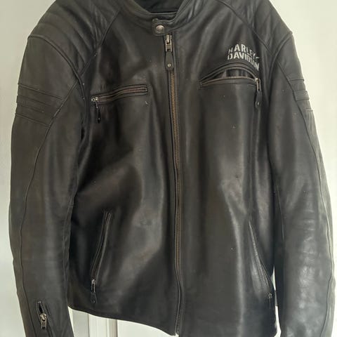 Harley Davidson skinnjakke med polstring på albue og skuldre. Svært lite brukt. Strl L