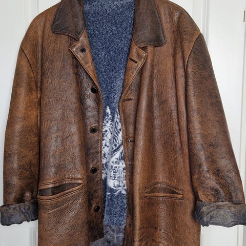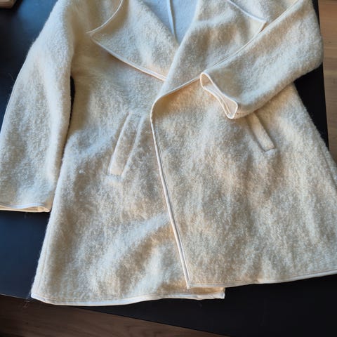 Ull utejakke med skinndetaljer. Retro